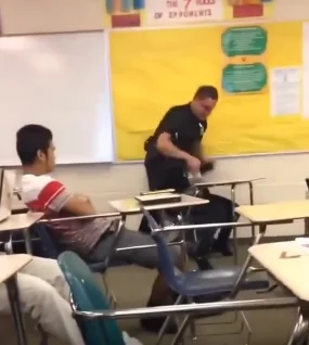 Les faits : encore une histoire lamentable, ridicule à la base, celle d'une écolière qui refuse d'obéir à l'ordre de son professeur de ranger son téléphone, et finit battue en pleine classe par un policier, puis menottée et embarquée au poste pour "résistance aux forces de l'ordre et refus d'obtempérer". Le policier en question, M. Ben Fields, est ce qu'on appelle aux USA un "School Resource Officer", quelque chose comme un policier attaché à l'école. Certains en rêvent en France. Il ne fait pas de doute pour tous ceux qui ont vu cette vidéo (filmée par un(e) élève) qu'il a fait un usage totalement disproportionné de la force, et, en passant, étalage de la sienne, puisque c'est un habitué, apprend-on, des salles de gym, dingue de musculation, et, on dirait bien, des matches de catch. On apprend aussi qu'il y a déjà eu deux plaintes contre lui par le passé, dont aucune n'avait abouti. Un certificat de l'école le présentait comme un parfait "School Resource Officer", et même un "role model" pour les étudiants. Quelqu'un qui donne l'exemple dans la vie. Quelqu'un à qui on doit aspirer à ressembler.