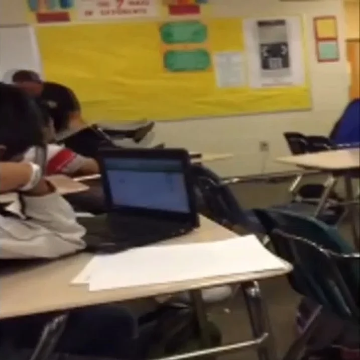 D'où ce sentiment qu'on a, devant cette classe d'élèves au pays de la liberté, feignant de ne rien voir, n'élevant surtout pas la voix, regardant devant elle, dans la direction d'un professeur qui tente de poursuivre son cours, comme si c'était possible, d'avoir devant soi un troupeau d'esclaves craignant le fouet, apeuré, abêti. Il est désolant qu'on en arrive là. Que la moindre résistance à un ordre (rappelons qu'elle refusait simplement de sortir de la classe, rien d'autre, rien de plus) appelle dans ce système de fonctionnement à une répression en chaîne (le professeur a appelé un surveillant, qui lui-même a appelé le policier), et déclenche la rage de celui qui, en bout de chaîne, n'est pas immédiatement obéi, et joue son travail, sa place dans la société, l'idée qu'il se fait de lui-même (force, masculinité, autorité incarnée...).