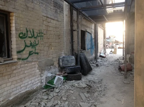 Au début de juin 2015, nous avons reçu un appel d’un ami actif sur la scène des arts de la rue et des graffitis en Allemagne depuis une trentaine d’années, qui a fait des recherches poussées sur les graffitis au Moyen-Orient. L’entreprise responsable des plateaux de tournage de Homeland lui avait dit qu’elle cherchait, pour la nouvelle saison, des artistes de la rue arabes pour inscrire des graffitis conférant une authenticité à un plateau de tournage représentant un camp de réfugiés syriens à la frontière libano-syrienne. Étant donnée la réputation de la série, nous étions plutôt réticents, jusqu’à ce que nous réalisions que nous pouvions, par cette intervention, transmettre notre mécontentement politique et celui de bien d’autres personnes à l’endroit de la série. C’était notre chance de faire valoir notre point de vue en utilisant l'émission pour subvertir le message.