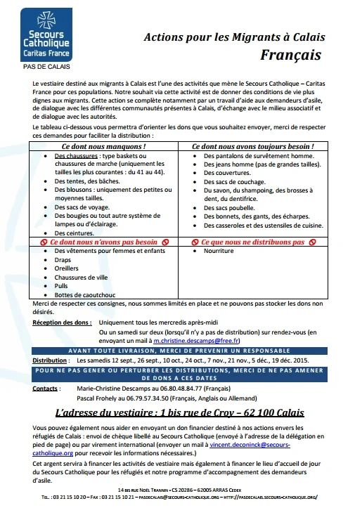 NB : Pour ceux qui se demanderaient, selon la formule consacrée, qui parle ici et d'où, voici ce que fait Pascal Frohely. C'est aussi l'occasion pour vous de faire circuler ce document.pdf qui liste ce dont ont besoin ceux qui aident les réfugiés à Calais.