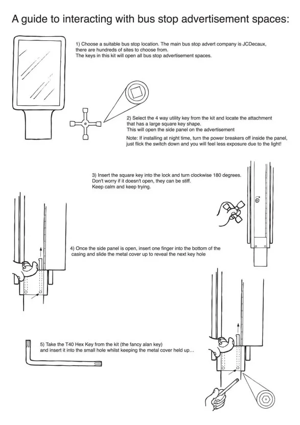Brandalism a été créé il y a quelques années en Angleterre (Nous en parlions dans le n°6 de La Nuit), et s'offre à aider tous ceux qui souhaitent "se réapproprier leur espace visuel". Consultez leur page des ressources, et entrez en contact avec eux si vous en sentez la nécessité. Ils ont déjà réalisé de nombreuses actions du type de celle réalisée à Paris pour la COP 21. Nous reproduisons leur "mode d'emploi" pour former les techniciens capables de réaliser rapidement et sans casse (c'est à dire proprement, et c'est essentiel) l'opération de substitution des affiches.