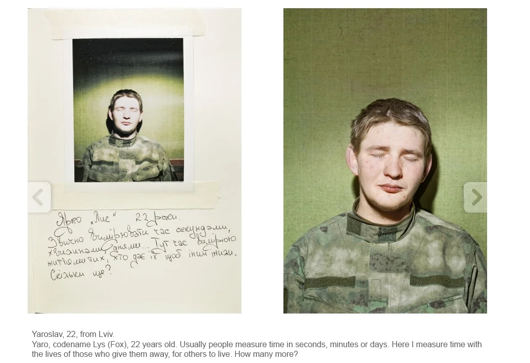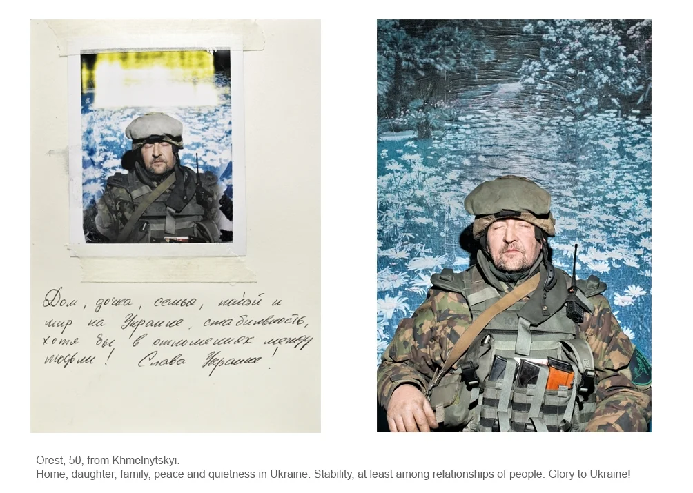 Les photographes Jean-Marc Caimi et Valeria Piccini ont demandé à des volontaires ukrainiens en partance pour le front de poser les yeux fermés, puis de leur dire à quoi ils pensaient le temps de la photo.