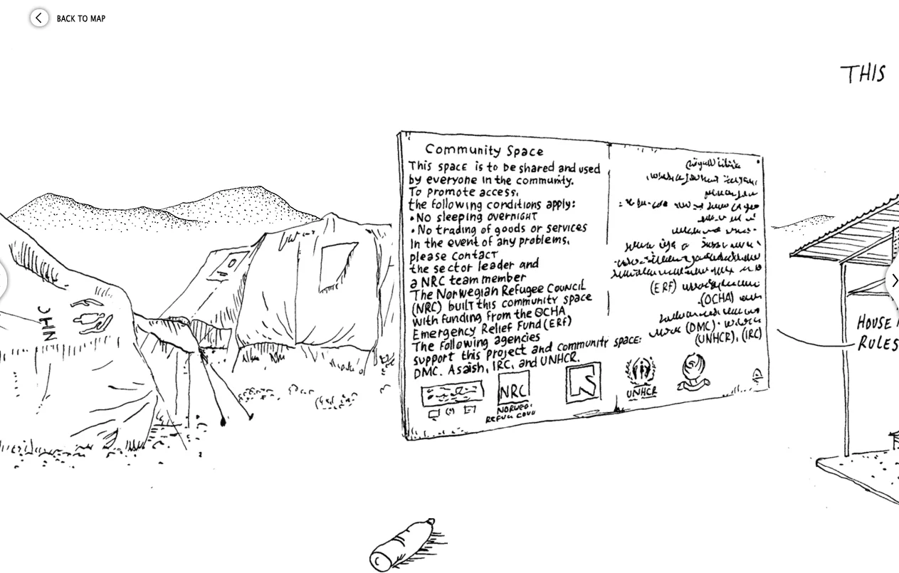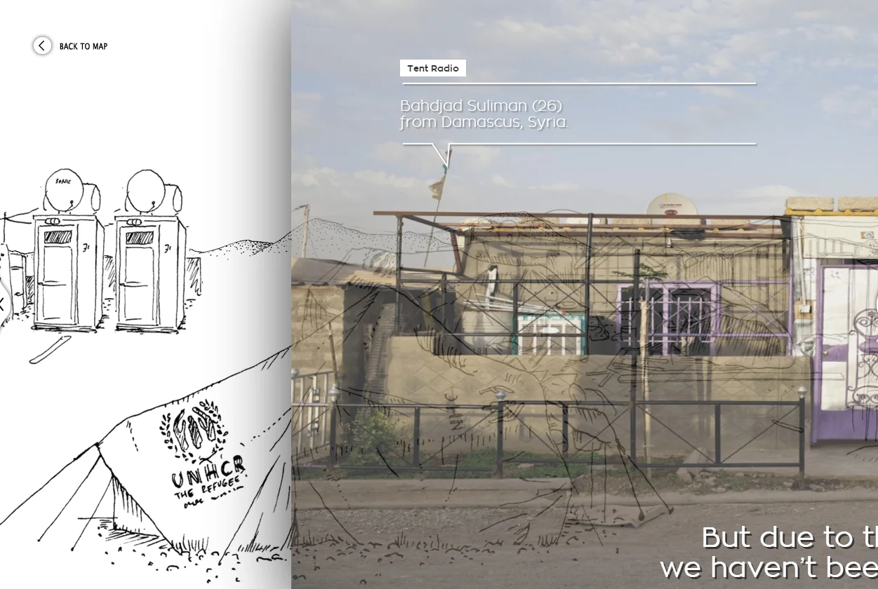 Refugee Republic vous emmène dans le monde réel, qui grouille et vit derrière les affiches d'appels à la charité des ONG. Les auteurs de ce documentaire interactif sont allés au camp Domiz dans le nord de l'Irak, où environ 64 mille réfugiés syriens kurdes ont cherché refuge. Vous pouvez explorer le camp à travers les dessins à la plume d'un artiste, l'objectif d'un photographe et les oreilles d'un producteur de radio. Vous rencontrez les habitants et apprenez à les connaître en faisant défiler récits audio-visuel, ou en déambulant dans les dessins enrichis avec le son.