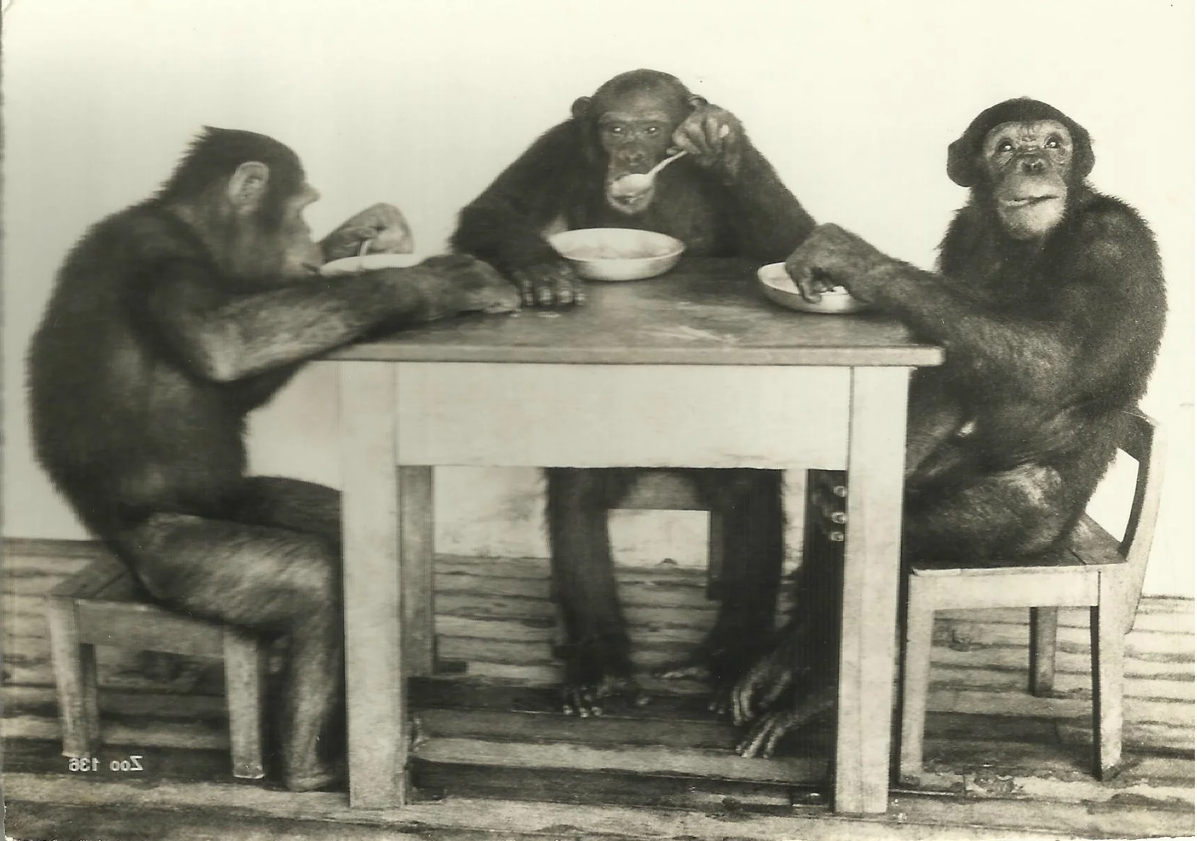 Le repas des chimpanzés au zoo de Zurich (Suisse). Coll. particulière.