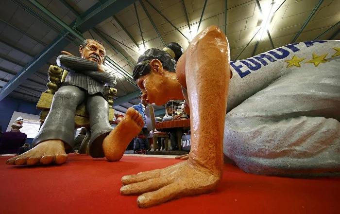 – Les reportages de la presse française se font tout aussi caustiques en évoquant combien l’UE est tombée bas. Les rédacteurs notent que, tandis que le président du Conseil européen Donald Tusk s’est rendu, à la veille du sommet, à Ankara, où il a conclu un accord avec les autorités turques sur les principaux points du (d’ores et déjà inacceptable) « plan d’action commun » concernant la question migratoire, Davutoglu, à peine à Bruxelles, a « séché » les Européens, en plaçant la barre des revendications turques bien plus haut et proposant un plan d’un cynisme indescriptible : « vous prendrez un Syrien pour chaque migrant que vous nous apporterez des îles grecques ». Horrifiée, Angela Merkel a rencontré Davutoglu à la veille du sommet dans un restaurant de Bruxelles et s’est mis d’accord avec lui sur le plan de décision, à l’insu de François Hollande, qui prit connaissance des faits, en même temps que les autres dirigeants, au cours du sommet.