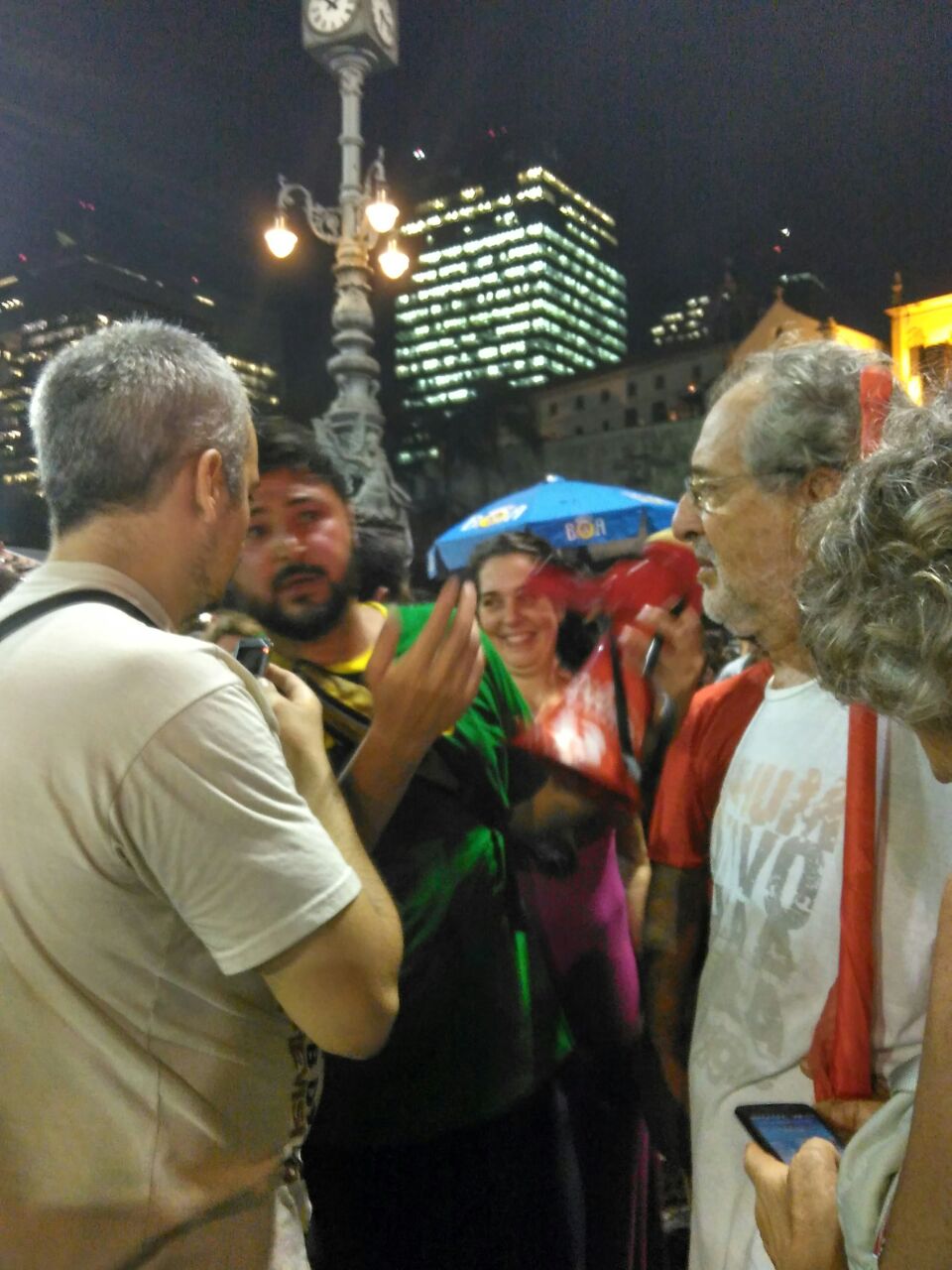 « Il s’agit d’un coup d’État juridico-médiatique, très évident, parce qu’il n’y a pas de motifs juridiques pour faire le jugement politique. Dilma a utilisé des fonds comme l’ont fait tous les dirigeants du pays, et personne n’a perdu son mandat pour l’avoir fait. Le problème majeur est que ce peloton juridique compte sur la complicité du plus grand groupe médiatique : le réseau Red O Globo. C’est pourquoi il mobilise autant de Brésiliens, mais ils utilisent des renseignements mensongers », nous racontait Iván Sangahara du groupe Teatro por la Democracia. Nous l’avons consulté au sujet de l’appui à la démocratie des artistes, et il nous a dit que « la classe artistique a été la plus persécutée par la dictature, ayant souffert la torture, la censure, l’exil. Aujourd’hui, les gens savent ce que font les forces armées, ce n’est pas une exagération de notre part. Par chance, les artistes et les intellectuels ont fait leur manifeste et ils accompagnent les gens dans les rues, en faveur de la démocratie ».