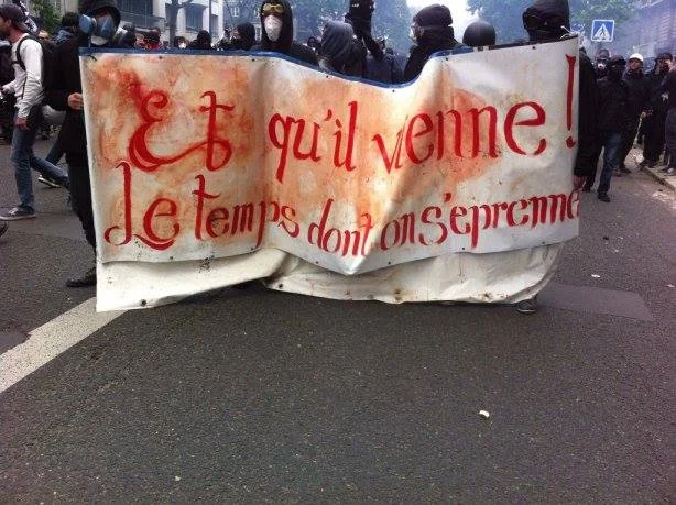 Il est temps d’arrêter de baisser la tête. Il est temps de sortir de nos vies bien rangées. Il est temps d’occuper les villes et les campagnes. Il est temps de bloquer, couper, débrancher tout ce qui nous aliène, nous opprime et nous menace. Il est temps de nous réunir partout en assemblées et de n’obéir plus qu’à nous-mêmes. Il est temps de détruire définitivement tous les pouvoirs et de déplacer tous leurs emblèmes et statues dans des musées de la tyrannie révolue, pour permettre l’occupation complète, permanente et définitive de toutes les places, d’un bout à l’autre du monde.