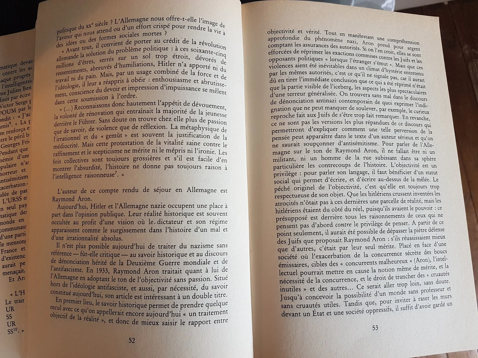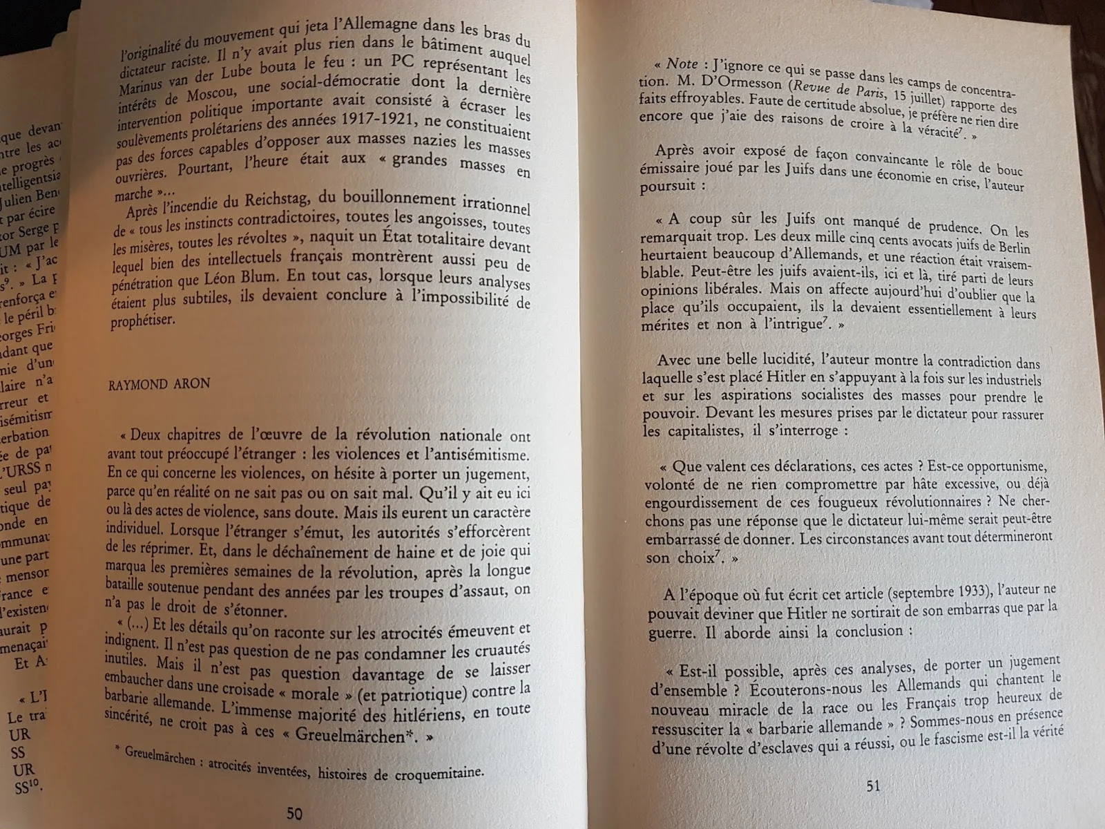 Raymond Aron écrivait ceci dans le numéro du 15 septembre 1933 de la revue Europe. On trouvera dans les pages reproduites ci-après de Les Infortunes de la Vérité, que j'ai publié chez Orban en 1981, de quoi contextualiser cette affirmation qui fait si mal à lire aujourd'hui.