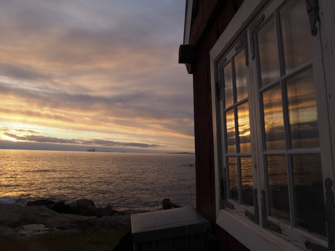 Samedi 29 août. Upernavik. Bonne nuit. Au-dehors le vent toujours aussi fort que me parviennent dans mon sommeil tour à tour les bruits sourds du ressac, du bois qui grince, des souffles et aspirations provoqués par les courants d’air dans la maison. Levée midi, je me délecte du spectacle de la mer agitée. Le ciel est blanc, la mer gris foncé moutonne. Trois mois dans une bulle en retrait du monde, des actualités, des médias, des évènements. Seulement le rythme lent des jours et le hurlement des chiens. Loin de la folie du monde.