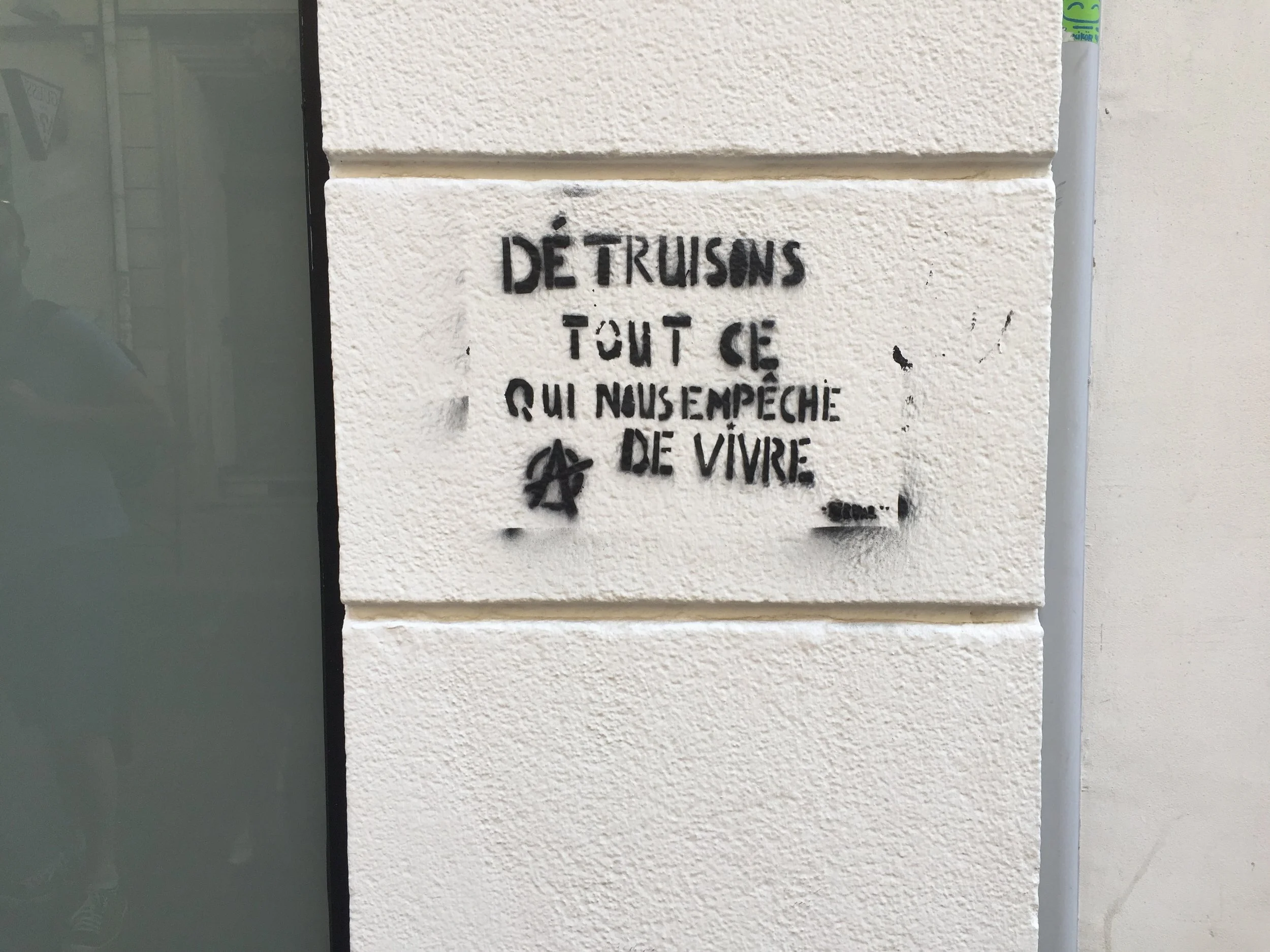 De leur édifice et les pavés du chemin / », dit la colère et le désir : comme on souffle à la fois dans ses mains et sur les braises de l’histoire, un soir très froid d’hiver – et que cette pensée réchauffe un midi brûlant de septembre et d’ennui, 4 septembre fondateur d’oubli. Jour où voir la rentrée rentrer, et les discours discourir qui justifient l’état injustifiable de ce monde. Alors plutôt écrire sur les murs : et même sur les bases des murs, à hauteur de regards, aux fondations des immeubles et des villes, ; oui, plutôt travailler à leur joyeuse dispersion ; plutôt chercher les chemins que de prendre pitié pour ces murs d’enceinte qui seront bientôt des ruines.