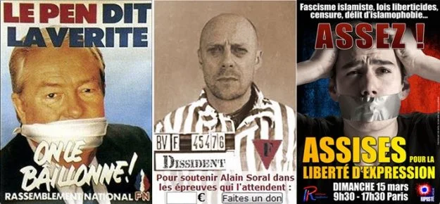 Au milieu : Alain Soral insulte la mémoire des déportés à son seul profit.