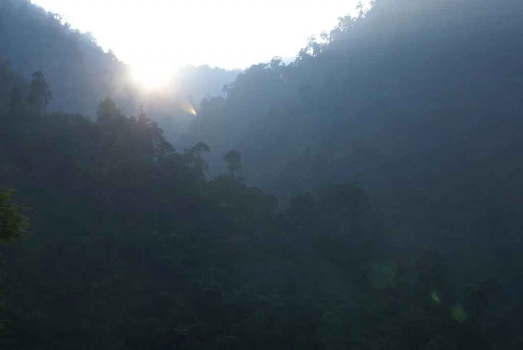 où sont les corps dans les plaines les arbres où sont-ils eux qui creusent le silence mortel et nos pas l’un après l’autre vers eux trébuchant le brouillard qui aveuglent qui rameutent et qui peine les sentiers des montagnes qui chantent leurs jambes leurs bras où sont-ils dans les plaines les arbres et la nuit lourde si lourde tellement lourde la terre rouge notre oripeau sur nos fronts nos tibias dans nos paumes cette glaise et le froid où sont-ils derrière les caféiers les théiers en mille miettes dérobés sous les ponts sur les ponts l’odeur de souffre hallucinée où sont-ils rouges noirs invisibles évaporés dans le silence qui hurle la nuit lourde si lourde les vallées et les corps dans les plaines les arbres où sont-ils eux qui creusent ce silence mortel et nos pas l’un après l’autre vers eux trébuchant le brouillard qui aveuglent qui rameutent et qui peine où sont-ils les…