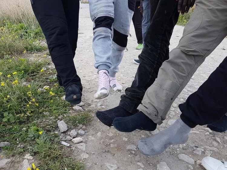 Le quotidien anglais The Independent nous apprend que la police française s'amuse, à Calais (cela arrive, d'après les témoins interrogés par le journal, "une ou deux fois par semaine"), à confisquer les chaussures des réfugiés attrapés près du port pour les laisser "retourner dans leur jungle", à une heure, une heure et demi de marche de là pieds nus). Les réfugiés rapportent aussi des "confiscations" ou destructions de téléphones. Pratiques qui se sont multipliées ces dernières semaines, au point que certains résidents de la jungle ne sortiraient plus qu'en sandales, de peur de perdre le bien le plus précieux de celui qui n'a rien : des chaussures qui lui permettent de se déplacer. Autre bien naturellement précieux : le téléphone, seul lien avec le monde et l'information de qui n'a ni toit, ni pays. Ces informations, affirme Grainne Mellon, membre du "Bar Human Rights Committee" (organisation d'avocats pour les droits de l'homme) et avocate, ont été corroborées par des rapports provenant de différentes sources.