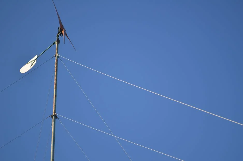 Petit focus sur l'éolienne : on peut se questionner sur les avantages à fabriquer une éolienne quand on sait qu'elle produit maxi 2000 watts (la plus grande) et donc ne répond pas à tous les besoins d'énergie pour une maison. Ici, l'avantage est surtout de participer de A à Z à la fabrication de l'éolienne (grâce à une formation avec Tripalium et l'organisation d'un chantier collectif) et de savoir comment la réparer soi même ! Tripalium fournit des manuels d'entretien et de maintenance. Nous avons pu observer Bruno à l'oeuvre :la manœuvre de la descente de l'éolienne est très précautionneuse, puis la rigueur du diagnostic, l'attention portée sur l'équilibre des pâles entre elles. Avec l'utilisation, il arrive régulièrement que le poids se décale, il suffit alors de le réequilibrer.