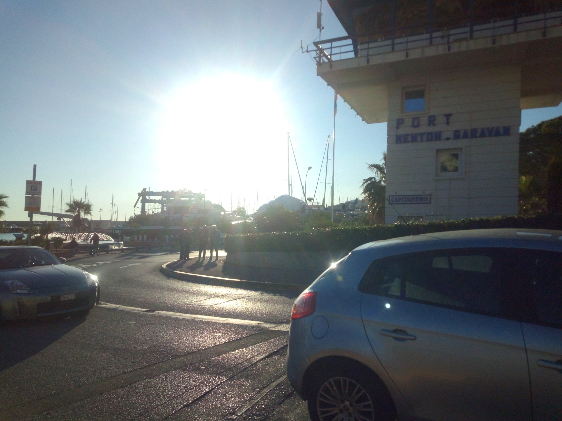 A l'arrivée à Menton, vers 10h du matin, le car se gare sur le parking du supermarché U Express, à quelques mètres du terrain de foot près du port de Garavan. Depuis le terrain, nous apercevons l'autoroute avec le viaduc de Sainte-Agnès où plusieurs migrants sont décédés, certains n'ayant pas hésité à se jeter dans le vide pour éviter des contrôles de police. Plus loin encore, on aperçoit le tunnel qui passe sous la montagne, où d'autres ont été percutés par un train ou une voiture.