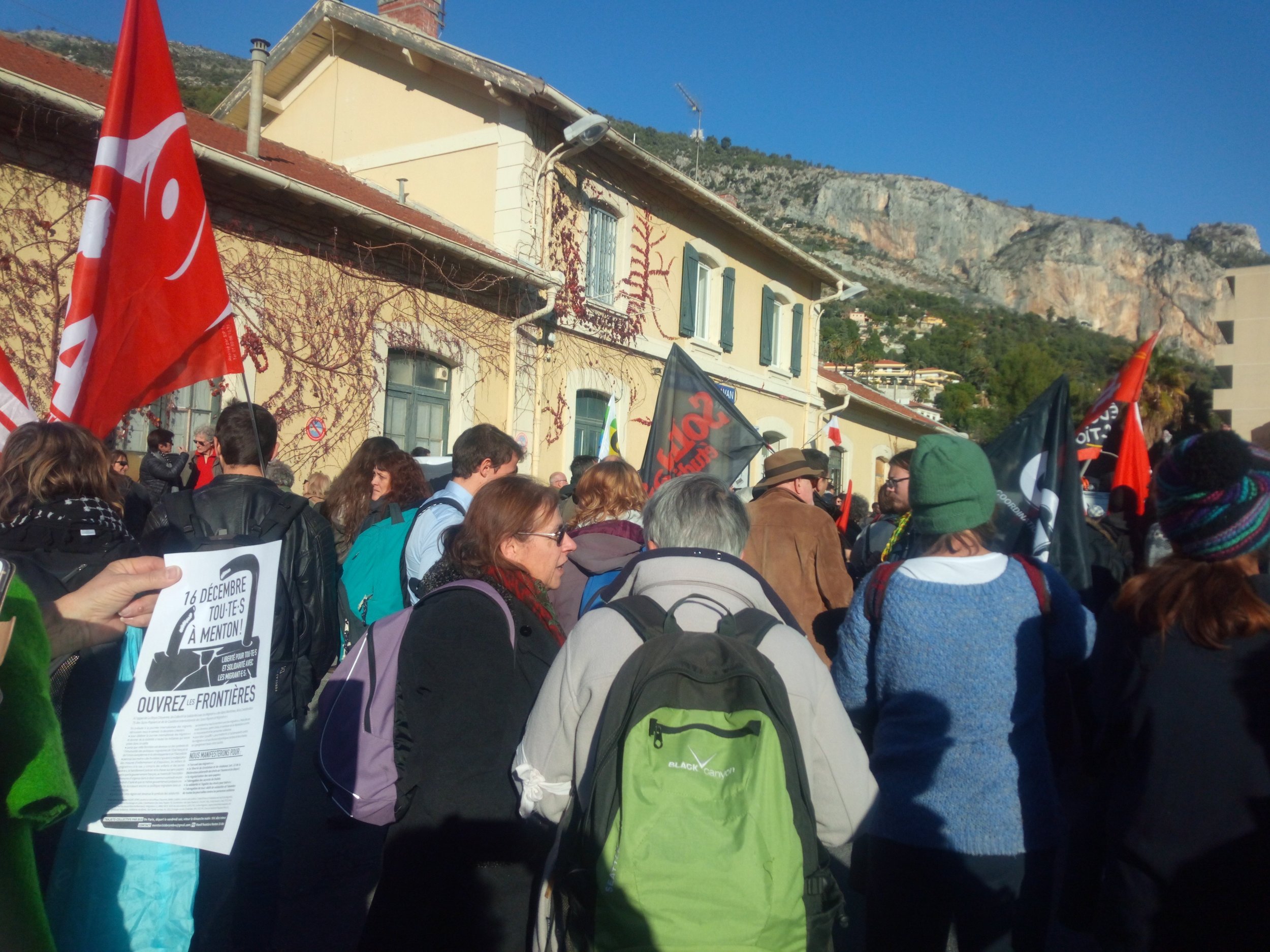 On le pressentait. Cette manifestation à la frontière franco-italienne serait un rendez-vous important. Combien étions-nous samedi 16 décembre à Menton ? 500 personnes selon France 3, 1040 selon le comptage effectué par les organisateurs. Ce nombre peut paraître peu élevé, mais réunir plusieurs centaines de personnes, venues de toute la France, devant la petite gare de Menton Garavan, à l'extrémité du pays, est un exploit qui va bien au-delà des chiffes cités. "Il y a seulement trois mois", déclarait Olivier du NPA, faisant le bilan au retour, "l'organisation d'un rassemblement à la frontière franco-italienne aurait semblé totalement utopique". Car si des manifestations à la frontière ont déjà eu lieu en Grèce, par exemple, comme à Idomeni, à la frontière macédonienne, c'était une première pour la France.