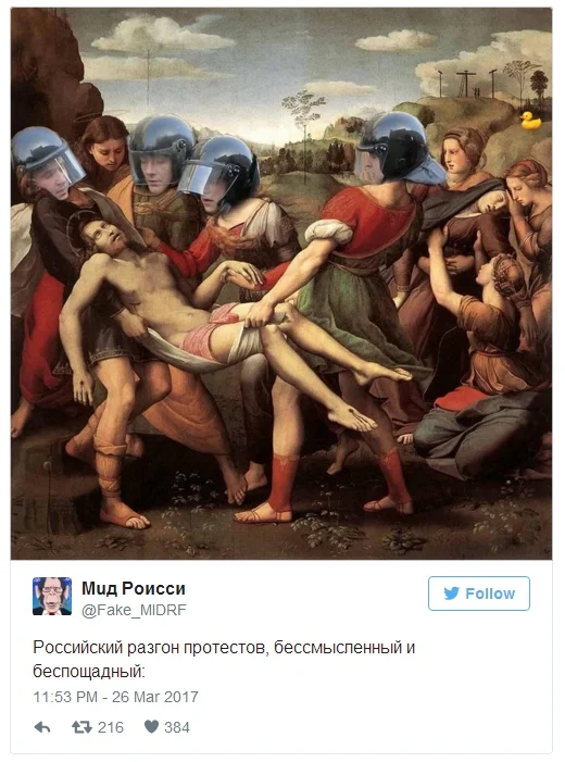 Cela, c’est, pour l’instant, la seule réponse du gouvernement russe au réquisitoire de Navalny : aucune réponse, juste une repression contre les gens — et on ne compte plus les agressions contre les opposants sur tout le territoire de la Russie. Pour l’instant, personne n’a été tué : il s’agit juste (si je puis dire) d’arrestations administratives, de condamnations à des amendes, ou des sabotages de voitures, de locaux, de menaces « anonymes » par téléphone etc.