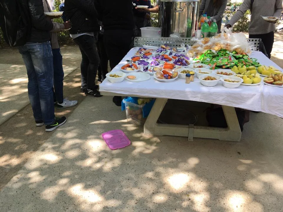 Il y avait du monde ce midi, msf aussi. Faire venir du monde autour d'eux, donner des repères, des conseils, juste discuter, et passer à plus de légèreté avec une partie de ping-pong autour d'un très bon déjeuner. Ce rendez vous devient régulier, on se connait bien maintenant. Certains sont là depuis longtemps, en recours, d'autres sont en période précaire de mise à l'abri sans déjeuner le midi en attente de leur évaluation, décision, la plupart sont des fidèles des cours de français.