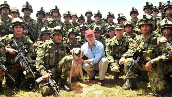 Si sur les terrains économiques et sociaux, il a approfondi le néolibéralisme, il en va de même pour la militarisation de la société. Les manifestations socialeset populaires ont été répriméesavec le même acharnement que ses prédécesseurs, le meilleur exemple étant ce qui s’est produit avec la grève agraire de 2013 et les différentes manifestations agraires et indigènes. Dans le même sens, on doit prendre en compte la complicité de l’État avec les paramilitaires, qui ont changé de nommais pas de méthodes criminelles, comme le démontrent les événements de Buenaventura (non pas la Capitale de l’Alliance duPacifique mais de la Tronçonneuse homicide), de même que les assassinats de leaders sociaux, de défenseurs des droits humains, d’écologistes, d’enseignants, d’étudiants… en Colombie, avant et après la remise du Prix Nobel de la Paix.