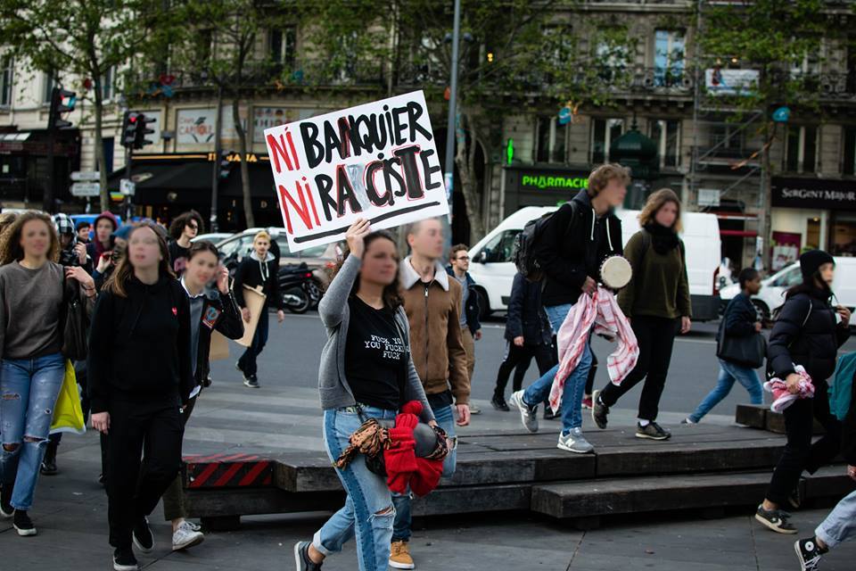 Et ils brandissaient des banderoles où ils avaient écrit un tout autre récit : «Le FN sert aryen» — «Au royaume des aveugles le borgne fait führer» — «Prenons la rue Pas les urnes» — «Ni banquier Ni raciste» — «Ingouvernables, nos voix ne rentrent pas dans les urnes» — «Bloquons la route au FN» — «Macron tu vas chialer» — «Ni patron Ni patrie» pendant qu'ils scandaient, en tapant sur des pots en plastique, «Tout le monde déteste le FN», ou qu'ils écrivaient sur les vitrines d'une agence bancaire : «Créer une banque ou l'attaquer ?» — «La police qui vote FN protège la Banque».