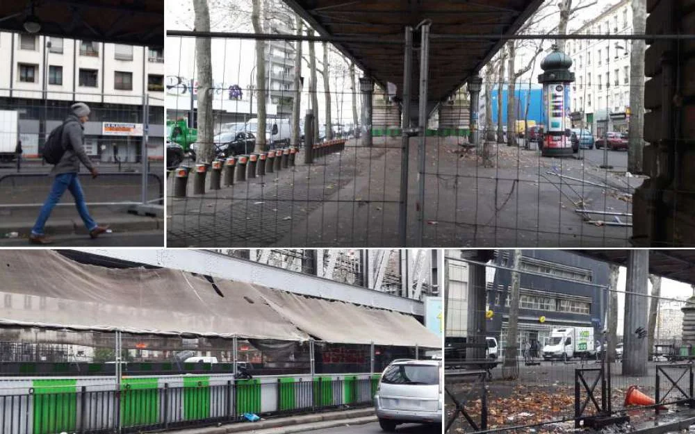 Des grillages ont été posés à chaque évacuation dans le but d'empêcher de nouvelles installations d'abris pour ces hommes et femmes déjà privés de tout. Les points d'eau dans les squares ont tous d'abord été fermés un à un, puis les jardins eux mêmes, puis la place du Maroc a été grillagée et c'est finalement la totalité du terre plain situé sous le métro aérien qui a été rendu inaccessible entre les stations Barbés et Stalingrad.