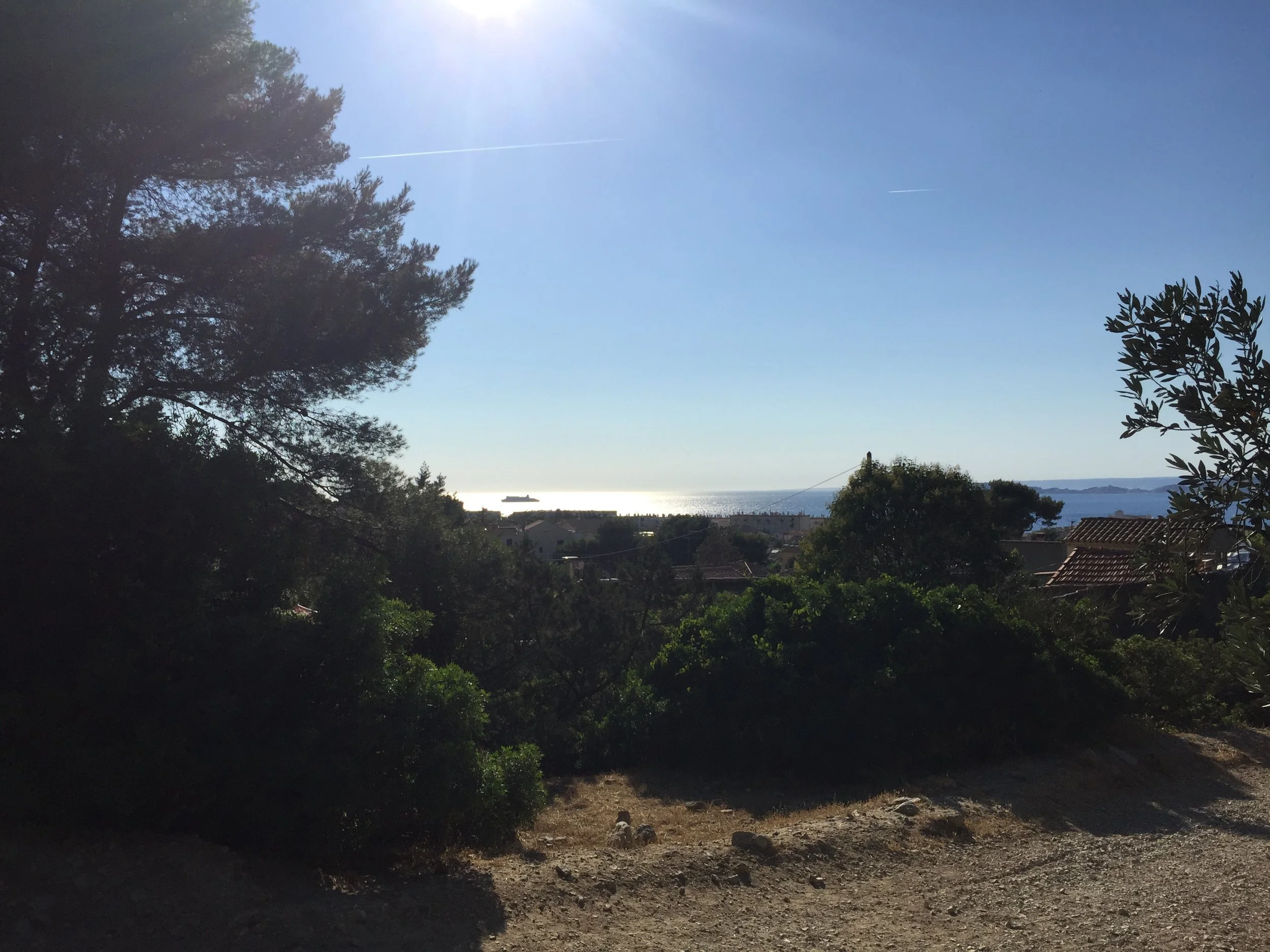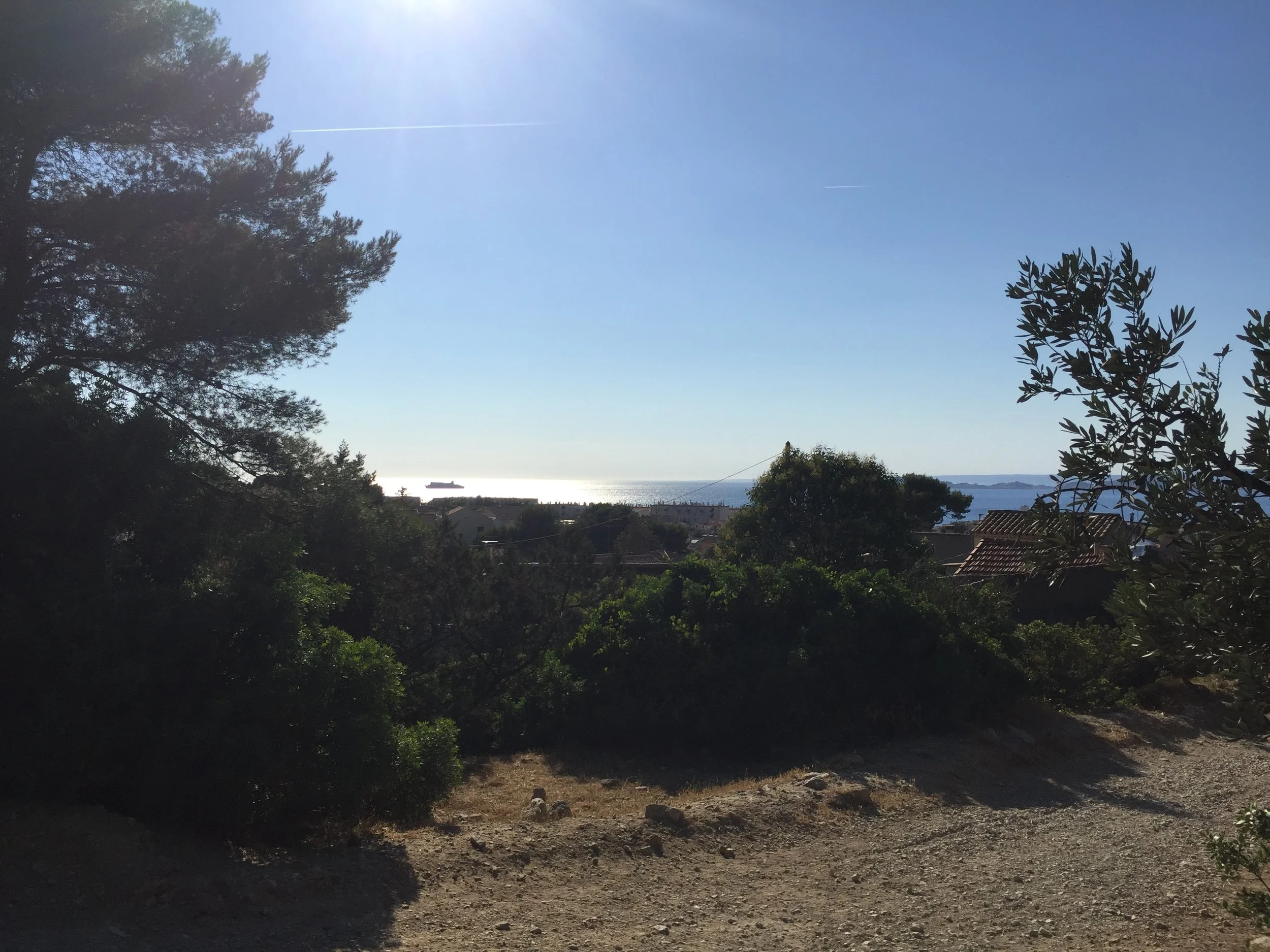 Il suffit de faire quelques pas dans les chemins de pierre au-dessus de Campagne Pastré, la ville n’est pas loin, on la sent dans le dos, derrière l’horizon des pins dont l’odeur enveloppe tout l’espace. Mais on ne voit pas la ville, ici, qui n’est plus qu’une hypothèse. À sa place, il y a le silence de la terre, et le cri des bêtes qui s’enfoncent dans la terre, insectes, et ceux qui les dévorent, oiseaux invisibles qui font trembler les arbres, le ciel. Tout cela qu’on ne voit pas non plus : plutôt, en levant les yeux, comme une étendue plane et opaque, blanche, d’une blancheur aveuglante au-dessus de l’horizon de la terre, et c’est à la forme mouvante d’un bateau qu’on reconnaît la mer, qui vibre comme l’image trouble d’un mirage dans le désert.