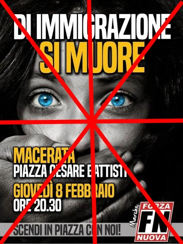 Ce n’est certainement pas un bon signe que la marche nationale antifasciste et antiraciste prévue à Macerata ce samedi 10 février, appelée par l’ANPI (association des partisans), l’Arci (association socio-culturelle de gauche), la CGIL et Libera (regroupement d’associations antimafia), ait été « suspendue », en écho de l'appel du maire (du Parti démocratique) à s’abstenir de toute manifestation. Alors que CasaPound et Forza Nuova paradent en ville. Toutefois, un vaste éventail de centres sociaux, de mouvements, d’associations, de syndicats de base, la FIOM (Fédération des métallos) et des sujets politiques, comme le Parti de la refondation communiste et Pouvoir au peuple (liste électorale unitaire d’initiatives autonomes), ainsi que de nombreuses sections de l'ARCI et de l'ANPI, se sont révoltés contre cette reddition et ont maintenu la manifestation.