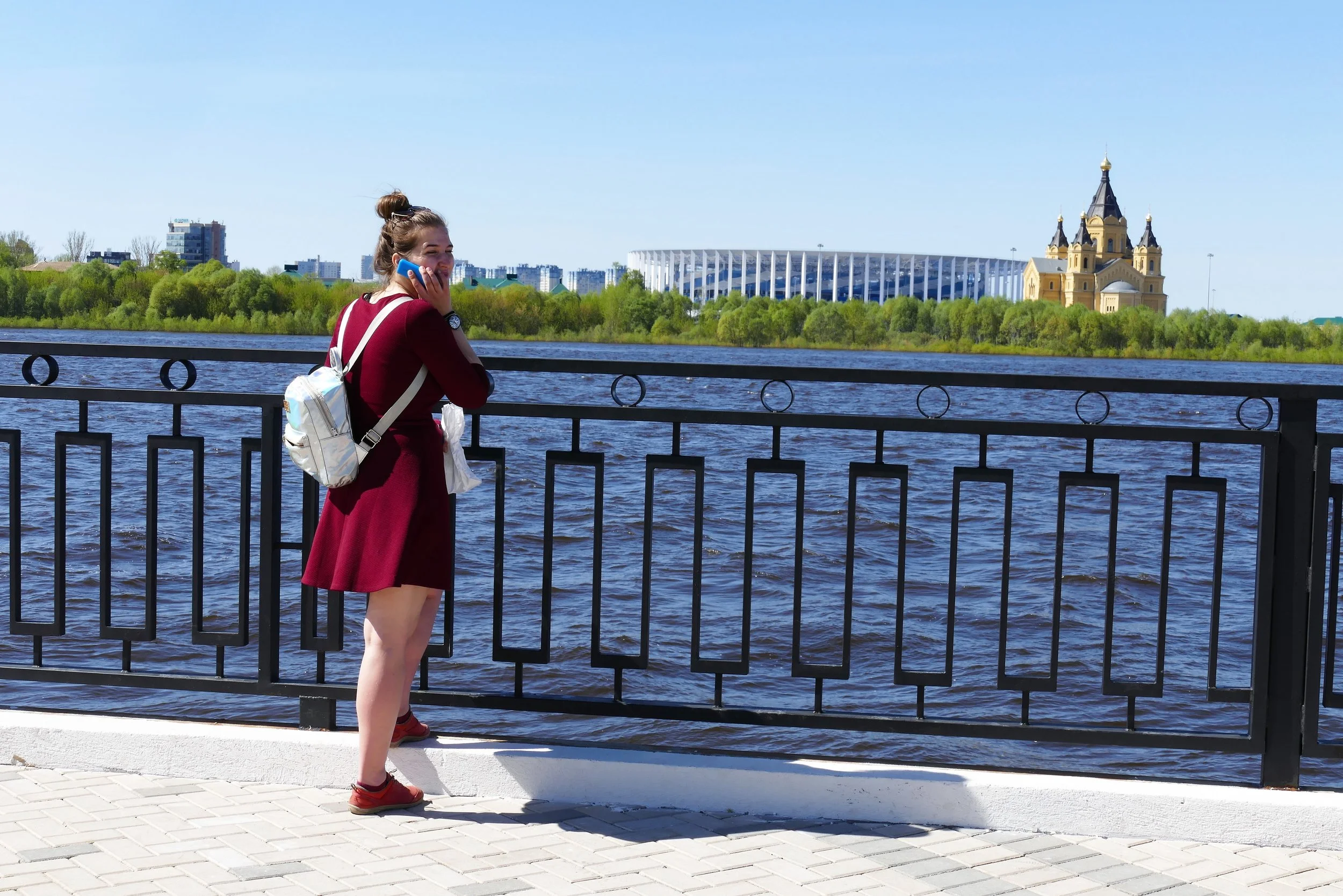 “J’ai vingt ans et je ne me souviens pas de cet endroit sans les palissades bleues”, lance Julia, alors que nous profitons d’une vue sur le stade, la cathédrale Nevski et le lieu emblématique où se montrent les siniye zabory : les berges de l’Oka et de la Volga, du pont Kanavinskii jusqu’au-delà de la gare maritime. Elles cachent des travaux sans fin.