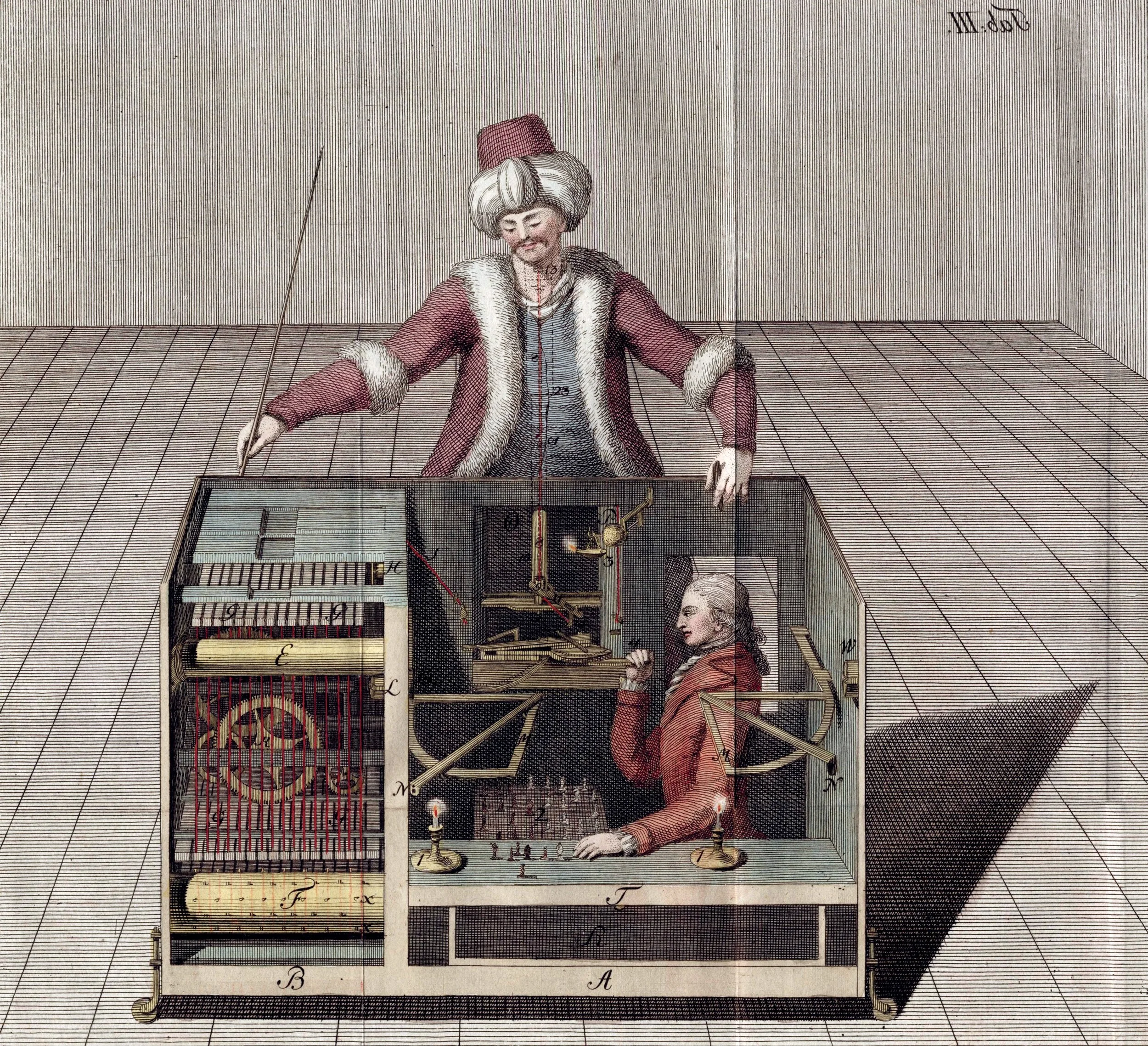 Le Turc mécanique, gravure sur cuivre de Racknitz, 1789