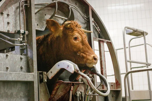 Une vache dans un abattoir à Corbas en France le 4 mai.