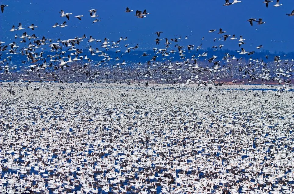 Mort de milliers d'oies blanches qui se sont posées sur un lac toxique