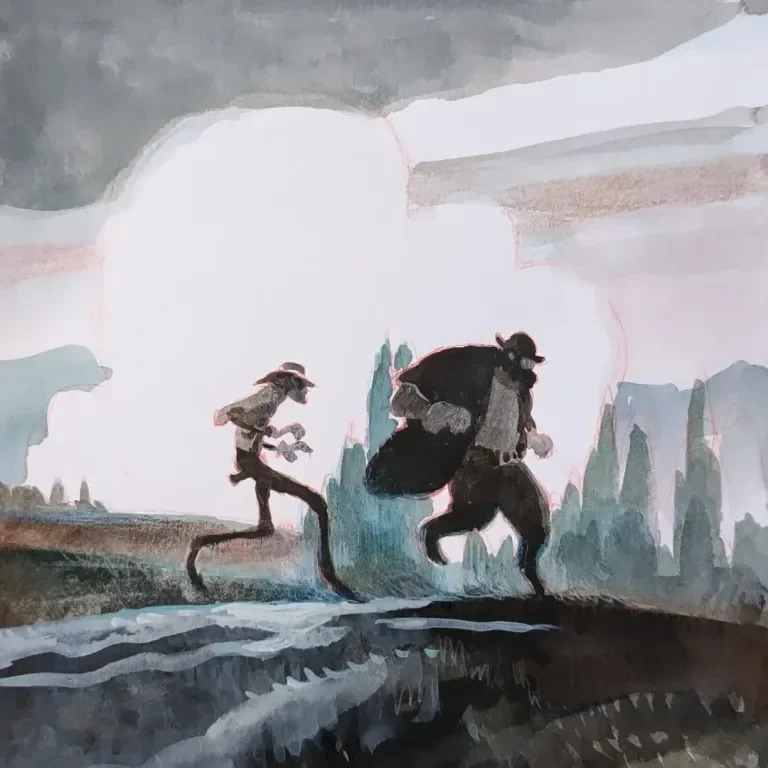 Mais j’aime bien aussi aménager une porte qui permette au spectateur d’imaginer un après. Là, je dis qu’ils vont vers l’Ouest et ça pourrait très bien se conclure comme ça, mais on peut imaginer les suivre dans leurs prochaines aventures à l’Ouest.