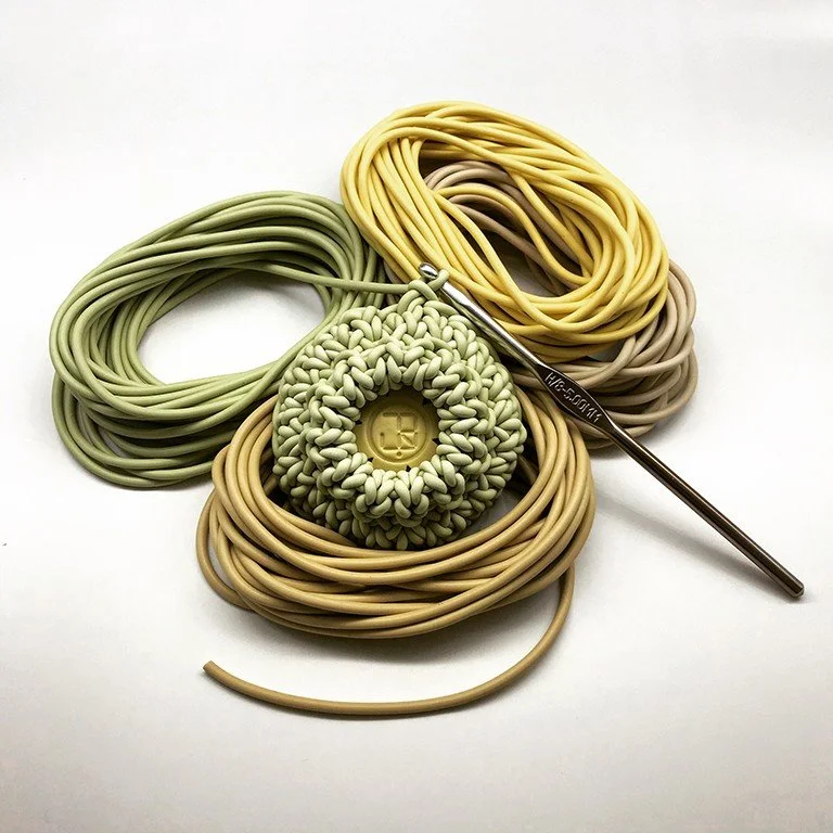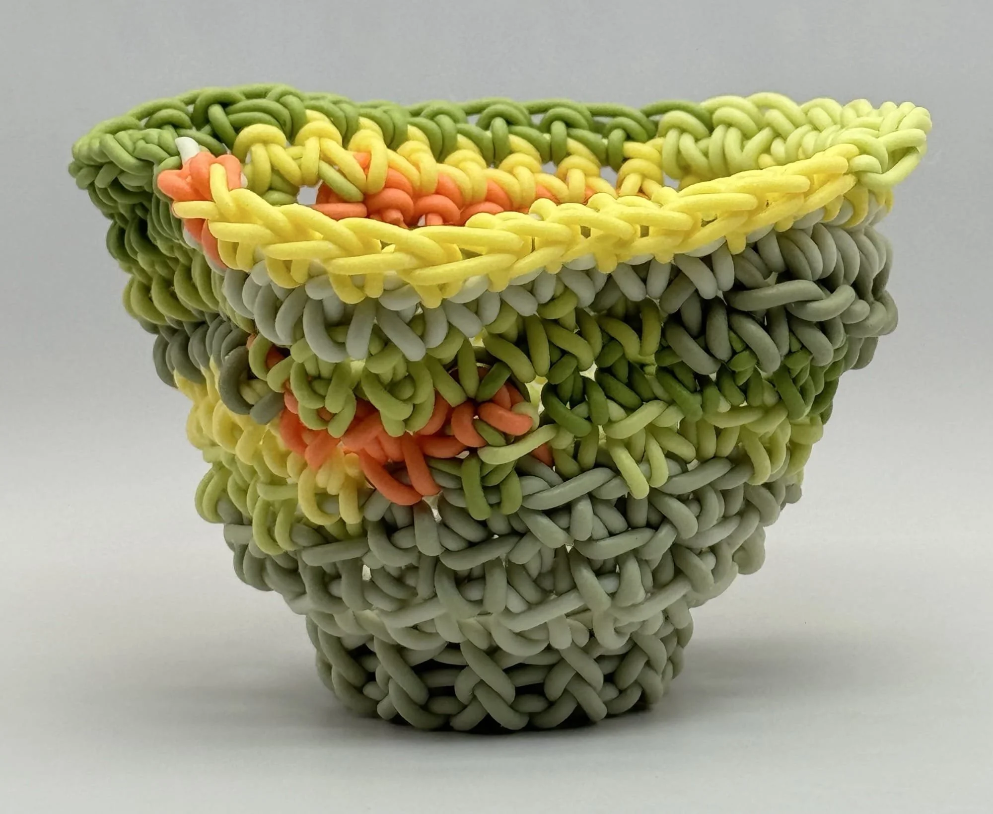 “Knot Pot 2503” (2025), crocheted colored porcelain, 2.75 x 3 x 3.25 inches