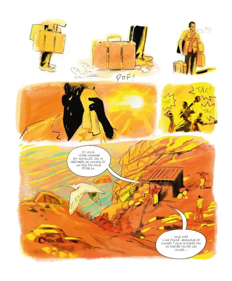 Xavier Coste : Il n’y a pas eu tellement de storyboard, le livre a été très décousu dans sa conception, c’est ce qui nous a plu aussi. Au départ, on avait juste l’anecdote, qui est assez incroyable, mais on ne savait pas si on avait assez de matière pour faire un livre. Mais c’était assez excitant.
