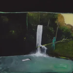 Là voilà déjà qui tire sur la corde. L’animal doit être lourd, mort noyé. La blonde hisse la carcasse trempée à bord. Le cœur de la bleue bat dans ses joues. Je regarde la blonde et j’imagine qu’elle lui explique ce qu’on en fera. Soudain, la bleue lui saute à la gueule. Le canot manque de se retourner, la bleue serre ses mains autour du cou de la blonde. Ma fille ne panique pas, je la vois tenter d’inspirer le plus d’air dont elle est capable. Elle sait survivre. La bleue lâche prise, la gifle et hurle comme une louve. Une joue rouge et une joue blanche, ma blonde déboussolée sous la poigne de la géante. Les deux se lèvent et à leurs pieds gît le mammifère trempé de vase. La bleue mord la blonde à l’épaule. La blonde en croche-pied et l’autre qui tombe dans le canot qui tangue de plus en plus. Un coup de poing fend l’air, j’entends un cri. La bleue soudain, le nez écarlate, plonge dans le lac et disparaît.