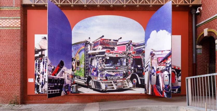 Depuis 2019, Louise Mutrel développe au Japon une recherche visuelle et narrative autour de l’univers des « dekotora » : camions tuning spectaculaires mêlant références de la culture populaire et esthétiques ultra-saturées. Ces véhicules tunés issus d’une contre-culture née dans les années 70 et héritée de la présence américaine dans l’archipel portent la customisation au rang d’art. Leurs styles uniques reflètent la personnalité de chaque propriétaire et mélangent les influences allant de la culture picturale ancestrale japonaise à la science-fiction, en se éférant notamment aux armures robotisées des personnages de la série d'animation manga Gundam, très populaire au Japon depuis les années 80. Paradoxal, l’ornement délirant de véhicules dont la fonction initiale est censée être purement utilitaire fait de ces camions hypertrophiés des œuvres ambulantes combinant sculptures, peintures et installations lumineuses.