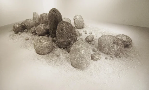 Kyôko Kumai, Temps, 2011 Fil d’acier inoxydable — 100 × 300 × 300 cm Photo © Mareo Suemasa
