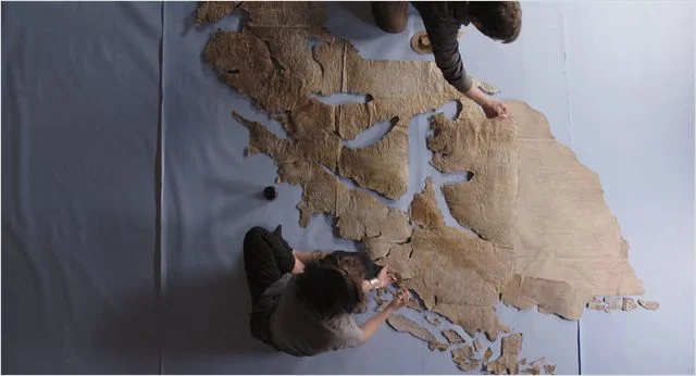 F : J’aime beaucoup la représentation de la carte du Chili que tu as imaginée et la façon dont on la déroule dans le film.