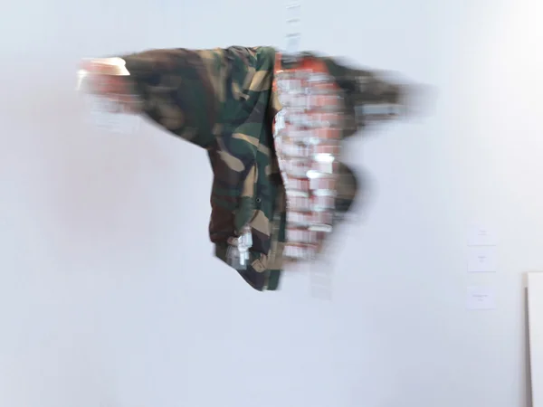 Trois bombers rebrodés d'une multitude de clés tournent à 360° tel des gardes sur leur mirador. Ils semblent scruter, fouiller la salle à la recherche de suspects. Ces fantomes détiennent les clés au double sens du terme, symboliquement les clés de la compréhension. Certains savent, gardent des informations, les distribuent aux compte-gouttes ou les détournent.... Mais aussi les clés qui ouvrent les portes des frontières, celles des réseaux de passeurs.