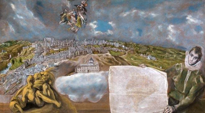 Multipliant les angles d’attaque, en un formidable feu roulant tentant d’abattre l’opacité et l’épaisseur de la représentation figée et convenue, Emmanuel Rubenconvoque ainsi tour à tour, avec une finesse et une intelligence de la toile qui évoquent aisément celles de Daniel Arasse, et notamment celles de son « Le détail – Histoire rapprochée de la peinture » (1992) et de son « On n’y voit rien – Descriptions » (2000), Vermeer et Le Greco, « L’art de la peinture » (1666) et « Vue et plan de Tolède » (1599). Dans la quête ouverte qui est la sienne, l’auteur s’appuie ainsi sur une analyse du statut de la carte et du plan dans l’art pictural, formidable marchepied vers une tentative de compréhension du lien intime et totalement heuristique entre art littéraire et « réel » – la réalité de ce « réel » mythique et encensé se révélant peu à peu comme l’un des enjeux centraux de l’essai .