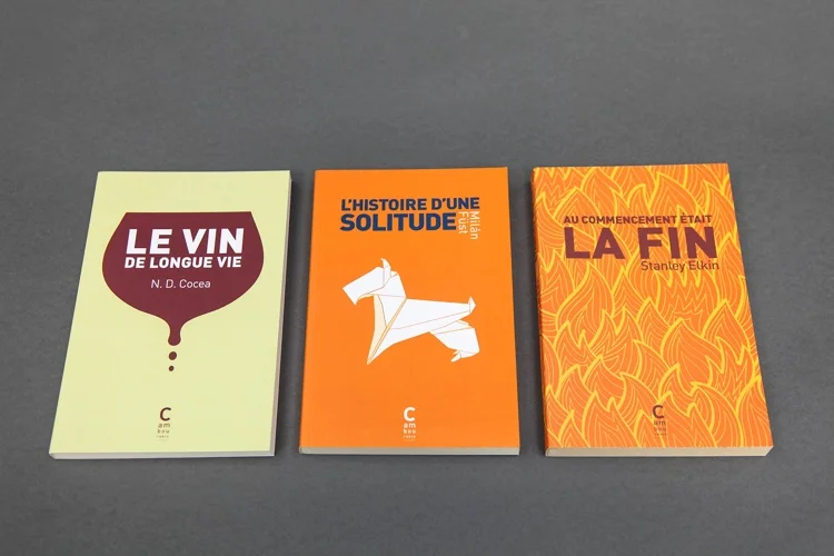 En ce qui concerne la création des couvertures, je recueillais dans un premier temps quelques mots clés, une ambiance, des couleurs et lisais ensuite le plus souvent les livres pour y trouver quelque chose qui résonnait en moi. Le problème de ne travailler que pour une seule maison est peut-être la répétition, l’habitude et un trop grand confort qui empêche d’expérimenter de nouvelles choses. D’ailleurs, pour parer à la routine j’ai multiplié les pistes et notamment créé tout une série d’illustrations pour les couvertures. Certaines frustrations restent cependant, comme celle de ne pas pouvoir réaliser certaines fabrications car trop coûteuses ou trop éloignées de la charte graphique de la maison.