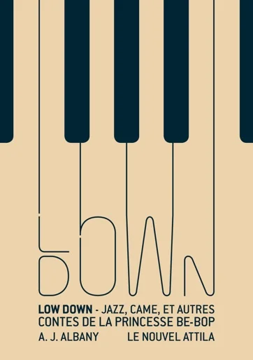 Pour « Low Down », je suis passé par plusieurs étapes. J’ai d’abord été influencé par le graphisme de certaines pochettes de jazz de maisons de disques comme Blue Note ou Impulse, et par de nombreuses images et typographies de cette époque. J’avais aussi envie de mettre en avant différentes thématiques traitées dans le roman, le jazz, la drogue, la relation père/fille… En définitive, c’est le piano qui s’est imposé à moi comme étant presque le personnage principal et j’ai alors décidé de le mettre en avant. J’ai souhaité recréer ces formes très graphiques que sont les touches de piano et leur donner vie avec le papier. La couverture a trois niveaux, les demi-tons sont gaufrés et l’interstice des touches est foulé. Le titre étant court et très fort il était important de le mettre en avant et, surtout, de le relier directement au piano. Il y a un sentiment de mouvement dans « Low Down », je voulais accentuer cet aspect en me dirigeant vers la rondeur, des courbes douces. Je voulais rappeler l’aspect humain à travers la couleur, c’est pour cela que les touches ont cette teinte presque épidermique. Pour les demi-tons je voulais sortir d’un noir trop évident et ce bleu profond est une des couleurs qui est restée dans un coin de ma tête en refermant le livre.