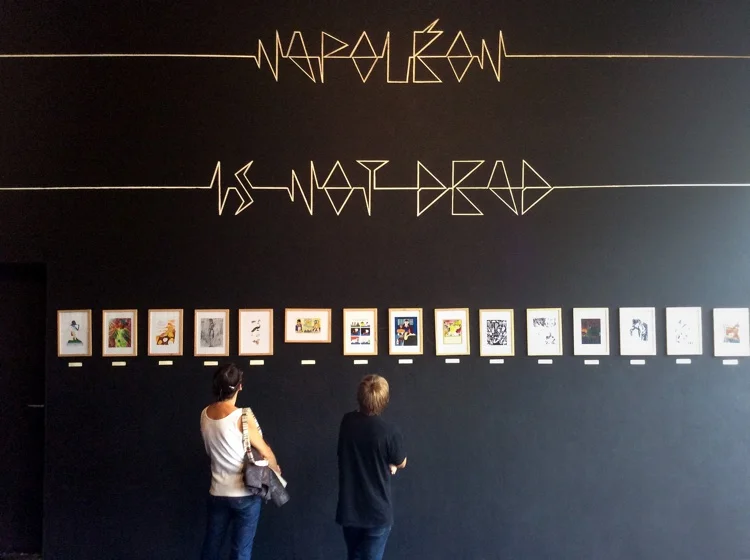 Certains de tes projets s’inscrivent clairement dans de « l’événementiel », je pense notamment à « Napoléon is not dead ». Comment travailles-tu sur ce type de scénographie ? Cette exposition tournait autour du livre « Le Secret de Sainte-Hélène » d’Henning Wagenbreth qui est aussi designer de couvertures de livres, tu aimes son travail ? Pas simple d’illustrer la couverture d’un livre qui est un recueil d’illustrations autour d’un autre livre ?