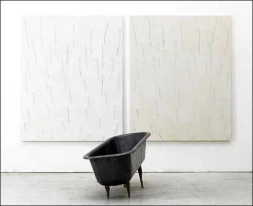 Pier Paolo Calzolari régénère ici sa syntaxe et fonde, avec Ensemble, un nouveau monde plastique réaccordant ses pulsions poétiques avec plomb, cuivre, bois, sel, structure givrante et givre, encre, feu, fleur et noix… Ce vocabulaire du quotidien qui joue au bord du monde sensible et qui laisse parler l'invisible du suggéré. Une œuvre toute en ruptures qui traque l'art dans l'aventure du quotidien par un retour au primitif, voir au primordial.