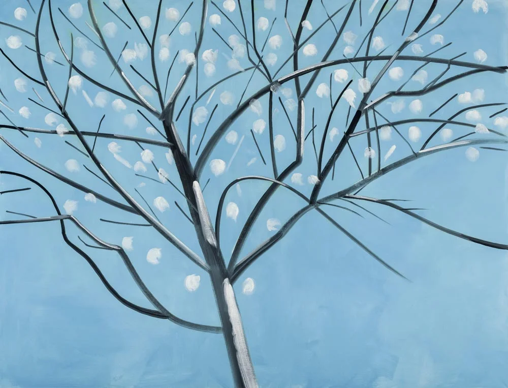 Les paysages exposés dans la galerie du Marais représentent une branche fragile, la lisière d’une clairière ou une maison encadrée de verdure. Peu importe le sujet choisi, Alex Katz peint avec une économie de traits et une simplification des formes qui convergent en une composition fondée sur l’essentiel. Les différents éléments sont peints sur un seul et même plan ; et de ce fait la notion de profondeur disparaît quasiment. Un trait de pinceau suggère une branche, une empreinte de pinceau se transforme en feuille, deux traits accolés évoquent une fenêtre : le style d’Alex Katz devient épuré, allégorique. La plupart de ses paysages ont été réalisés dans le Maine aux États- Unis. La lumière de cette région est pour l’artiste plus riche et plus sombre que celle des peintres impressionnistes. Katz dit de la lumière dans le Maine : « Cela m’a aidé à me démarquer de la peinture européenne et à trouver mon propre regard. »