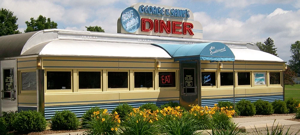 Découverts ici avec American Graffiti les restaurants de quartier, autrement appelés Diners, faisaient partie du paysage urbain, avec le Nighthawks de Hopper, comme exemple flagrant des villes américaines. Mais, ceux-ci sont tombés en désuétude avec l'arrivée des grandes chaînes de malbouffe de McDo à Taco Bell et leurs fringantes façades d'aluminium n'ont plus bientôt été que carcasses vides aux vitres brisées. C'est en passe de changer car un dénommé Steve Harwin à Akron dans l'Ohio a décidé de briser ce cercle mortifère…
