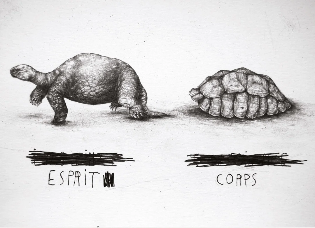 Ses premiers pas artistiques se sont effectués à Marseille, à même les murs. Jérémie Amigo, né en 1987 et résidant à Bruxelles depuis 2009, a développé dès le départ un style et une iconographie qui lui sont propres. Son dessin n’est ni gestuel, ni rapide : il s’applique à une iconographie précise et riche en détails. Les personnages dépeints sur ces murs ont été emblématiques et ont marqué très tôt son originalité. Mais, au fil des années, l’artiste intéressé de plus en plus par la narration et le langage métaphorique des images, a privilégié le dessin au crayon sur papier et la photographie pour abandonner totalement les tag. Techniquement, le geste est toujours aussi calibré, minutieux. Chaque détail de ses dessins, réalisés au crayon gris, est exécuté avec finesse et virtuosité car, l’artiste ne supporte aucune économie de moyen ou de temps.
