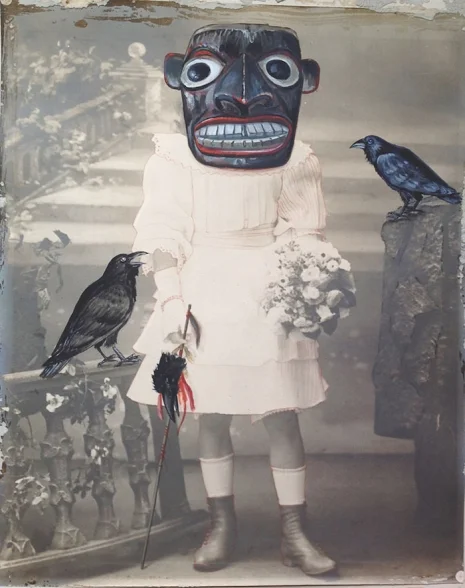 Coco Fronsac est une artiste qui passe une bonne partie de son temps à chiner des vieux clichés aux puces et les transforme en œuvres surréalistes bien déjantées.