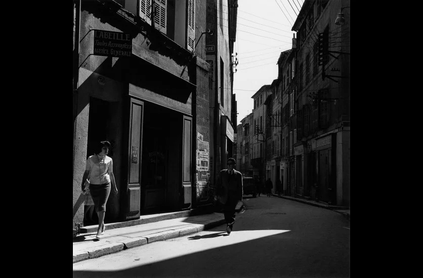 Le dépaysement est total pour l'Américain qui n’a jamais quitté le nord des États-Unis. Découvrant pour la première fois l’Europe et le pittoresque de cette bourgade française, Harry Callahan donne à voir, dans les images réalisées à Aix-en-Provence, la même rigueur et les mêmes préoccupations esthétiques que celles prises précédemment à Chicago et dans le Middle West : son rapport à la ville et à l’architecture, ses photos de rues dont les silhouettes furtives sont le plus souvent féminines, son approche minimaliste de la nature et, bien sûr, la présence constante d’Eleanor, son épouse.