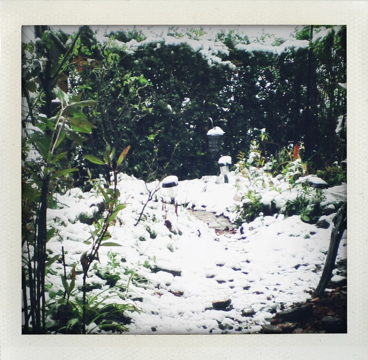neige sur un petit jardin j’essaie d’être optimiste un jour je rentrerai même si personne avec moi ne vient